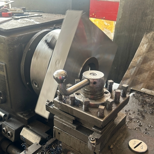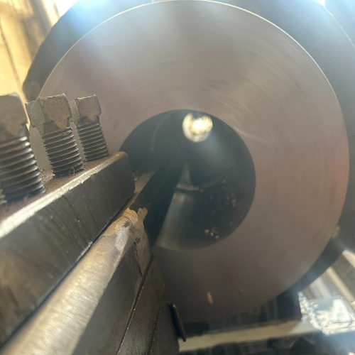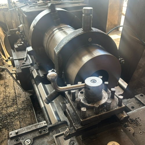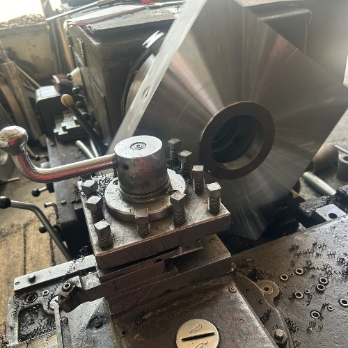 Metalpsan olarak, büyük çaplı ve ağır metal parçaların işlenmesinde yılların tecrübesi ve donanımlı atölyemizle hizmet veriyoruz. Görselde yer alan işlemde, klasik torna tezgahında yüksek hassasiyetle gerçekleştirilen dış çap tornalama ve yüzey düzleştirme işlemi uygulanmıştır.